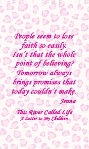 “People seem to lose faith so easily. Isn’t that the whole point of believing? Tomorrow always brings promises that today couldn’t make.”