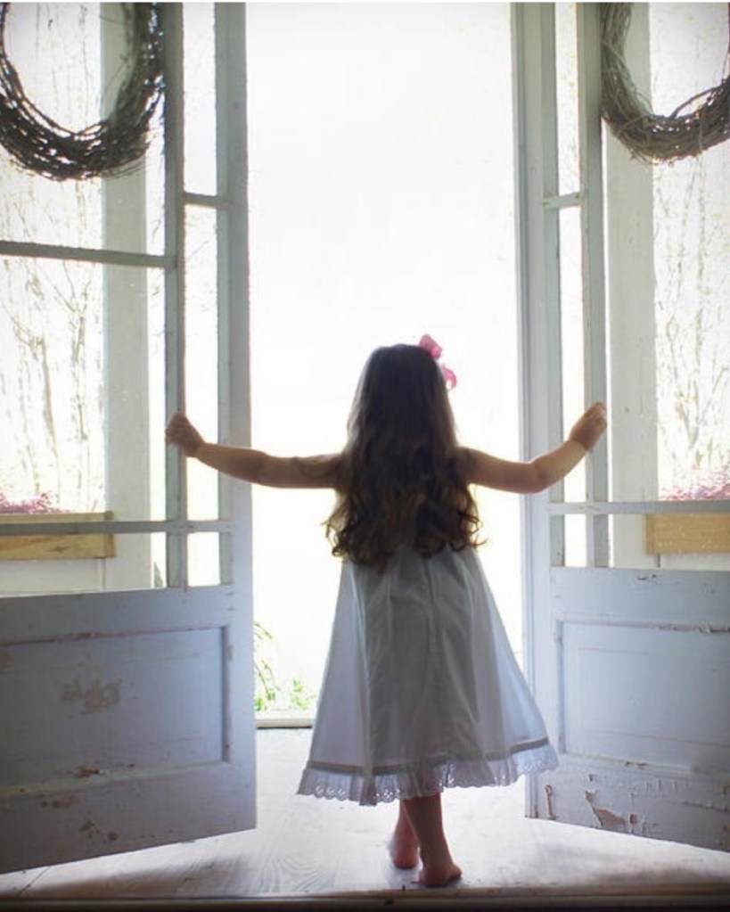 Girl looking out window